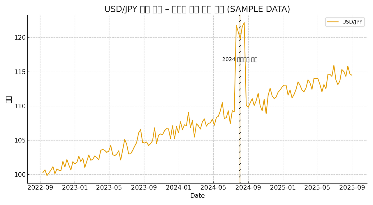 | 빠른 인하 | 경기침체 우려로 급격히 인하 | 위기 신호 → 불안 확산 | 달러 약세, 엔화 급등, 엔캐리 청산, 글로벌 증시 급락 |